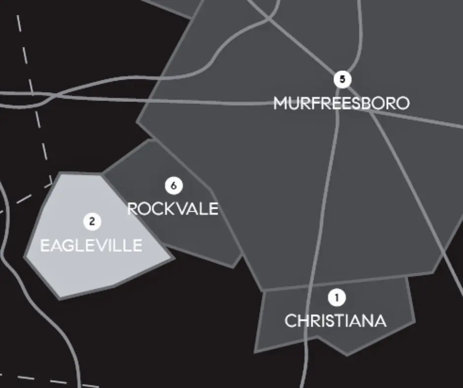 Eagleville is a small and tight-knit community on the southwest corner of Rutherford County. The area features charming restaurants and antique stores plus an active town council that keeps residents busy. The landscape is beautiful and tranquil and is perfect for anyone looking for a more rural lifestyle with the convenience of Murfreesboro only 15 minutes away